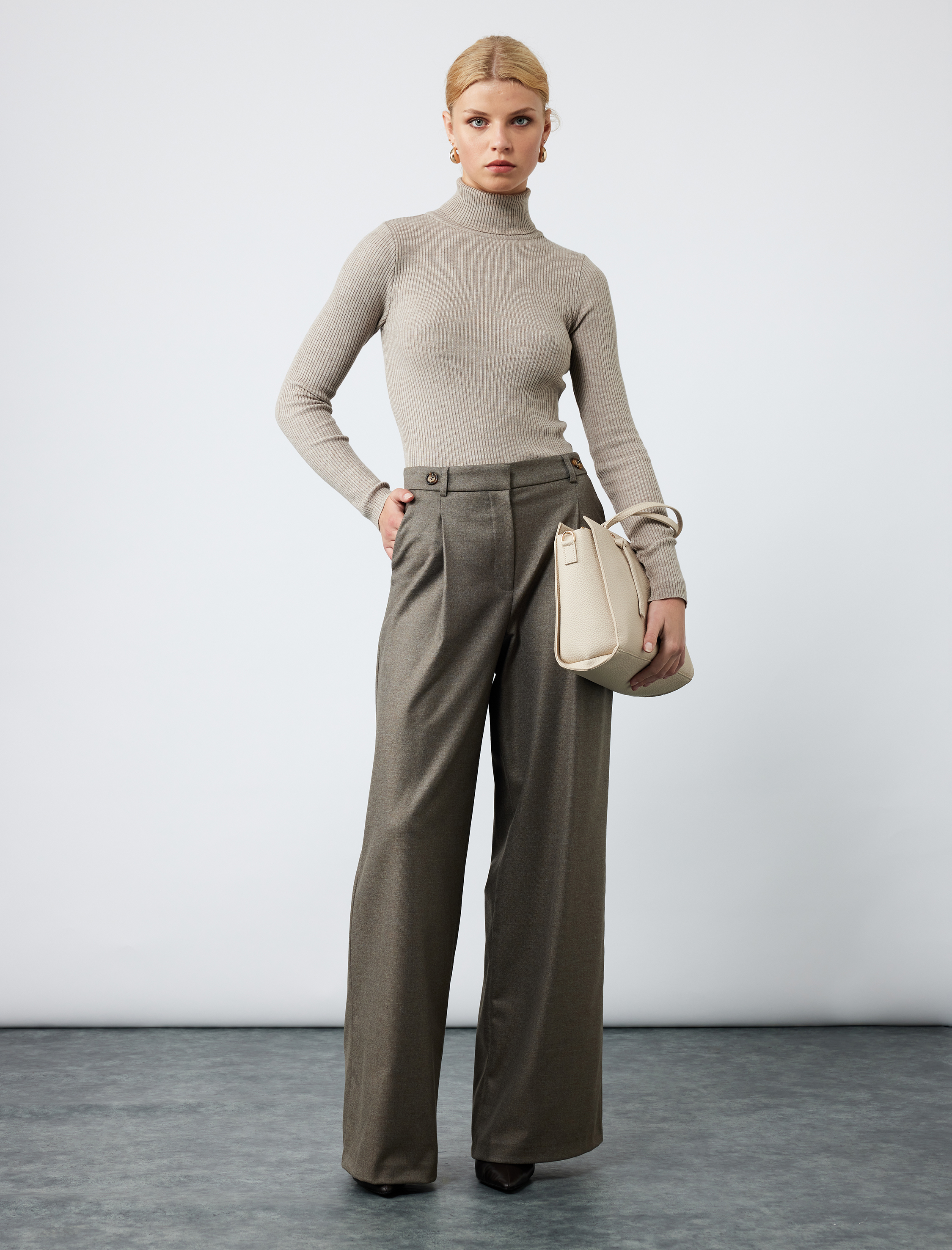 Uzun Kollu Viskon Karışımlı Balıkçı Yaka Kazak