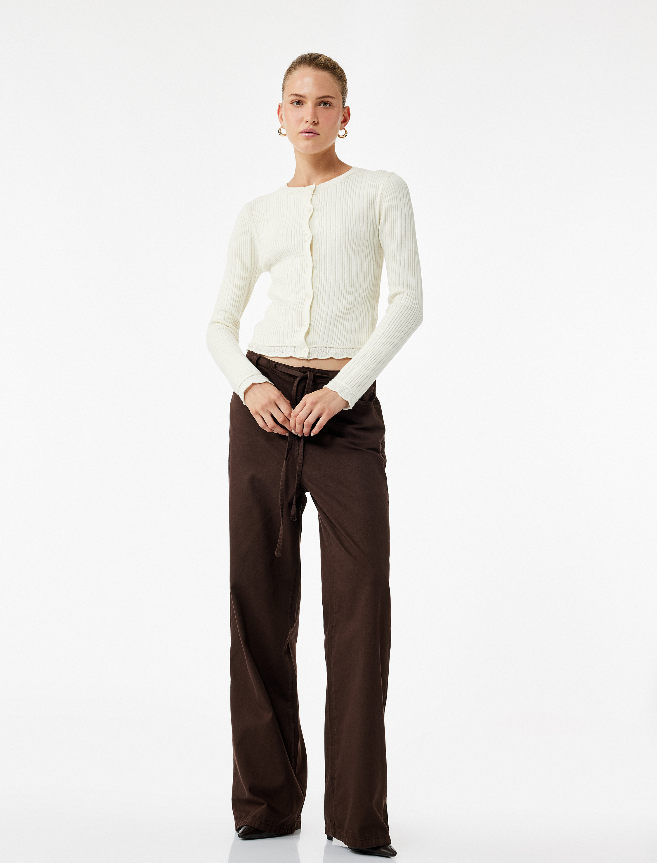 Uzun Kollu Viskon Karışımlı Dokulu Düğmeli Bisiklet Yaka Triko Hırka