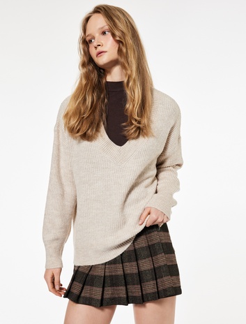 Oversize kesimli V yaka triko kazak modelleri hem rahat hem de çağdaş bir görünüm yaratıyor. Geniş yakalar, uzatılmış kollar ve asimetrik kesimler, V yaka triko kazak modellerini modern stil anlayışının bir parçası haline getiriyor. Oversize bir V yaka triko kazak modeli jean pantolonlarla harika bir uyum sağlıyor. Özellikle mom jean ya da skinny jean ile tamamlanan v yaka örgü kazak modelleri rahat ama stil sahibi bir görünüm oluşturuyor. Ayakkabı seçiminde sneakers ya da bot kullanarak havanızı tamamlayabilirsiniz. Soğuk havaların kurtarıcısı olan örgü V yaka kazak modellerini boğazlı bodyler ile bir araya getirebilirsiniz. Geniş V yaka kazak tasarımın altına kontrast yaratacak ince boğazlı trikolar giymek hem şık hem de sıcak bir tercih olacak. Ekose bir blazer ya da uzun bir kabanla ise kombininizi tamamlayabilirsiniz.
