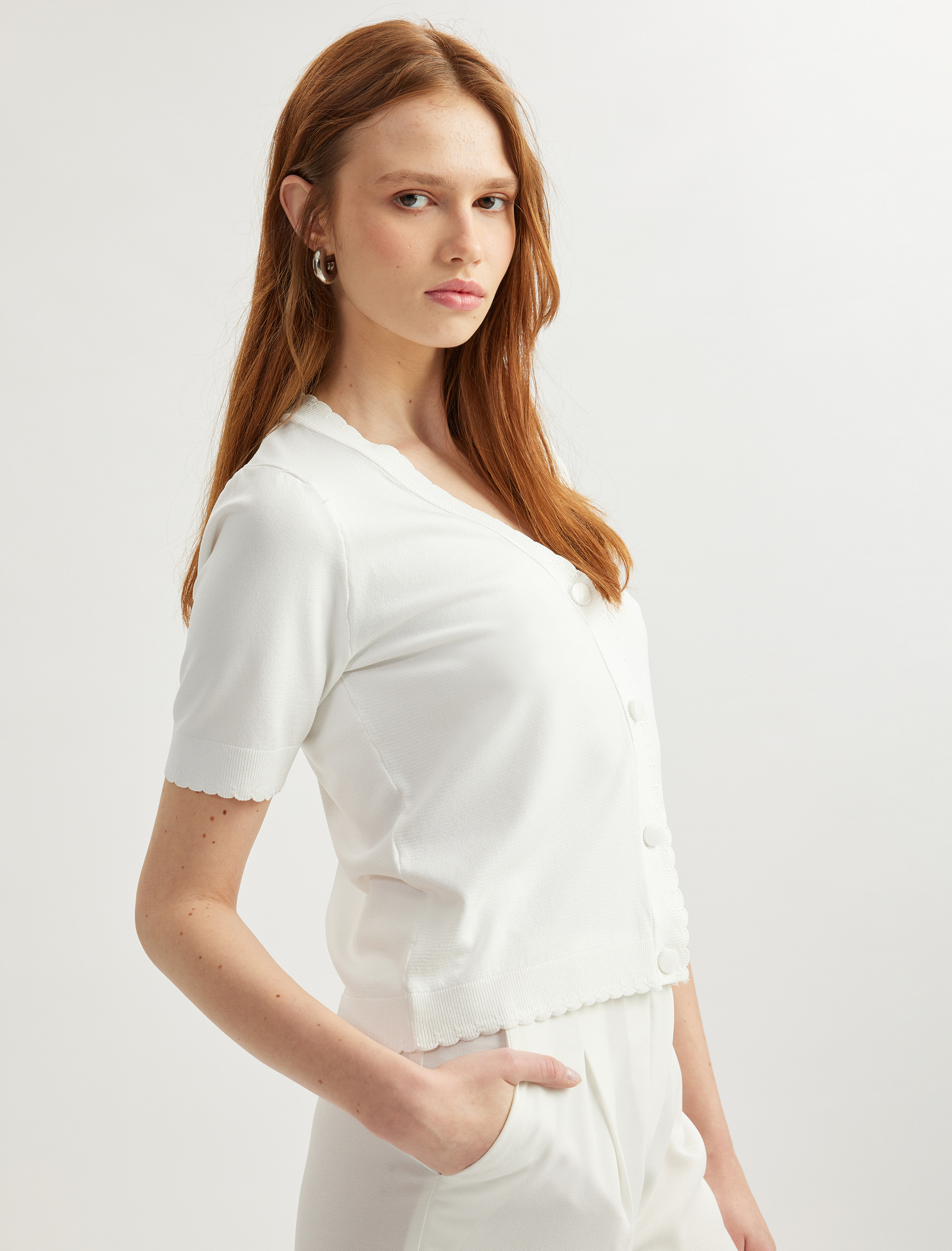 V Yaka Kısa Kollu Düğmeli İnce Triko Hırka