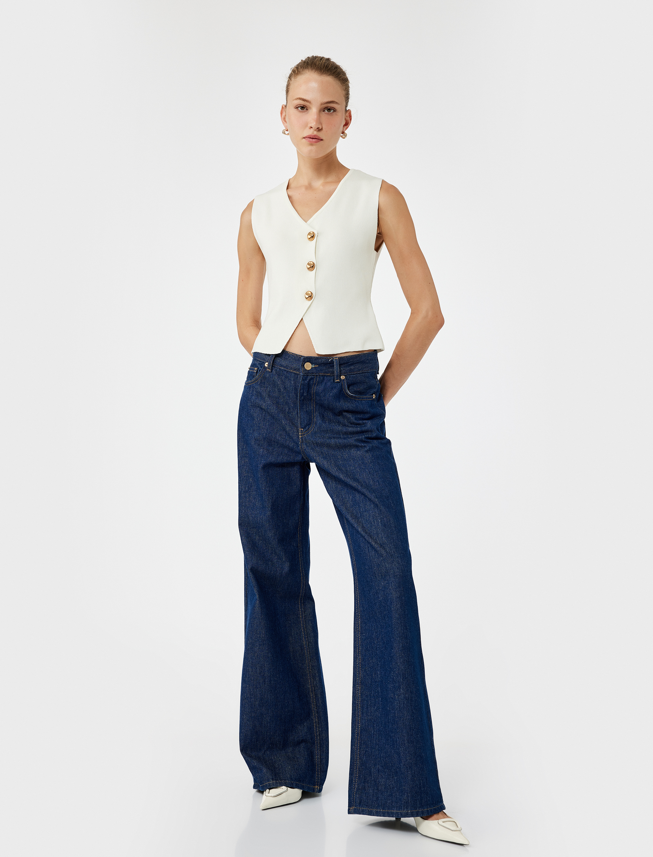 V Yaka Kolsuz Gold Düğmeli Triko Yelek