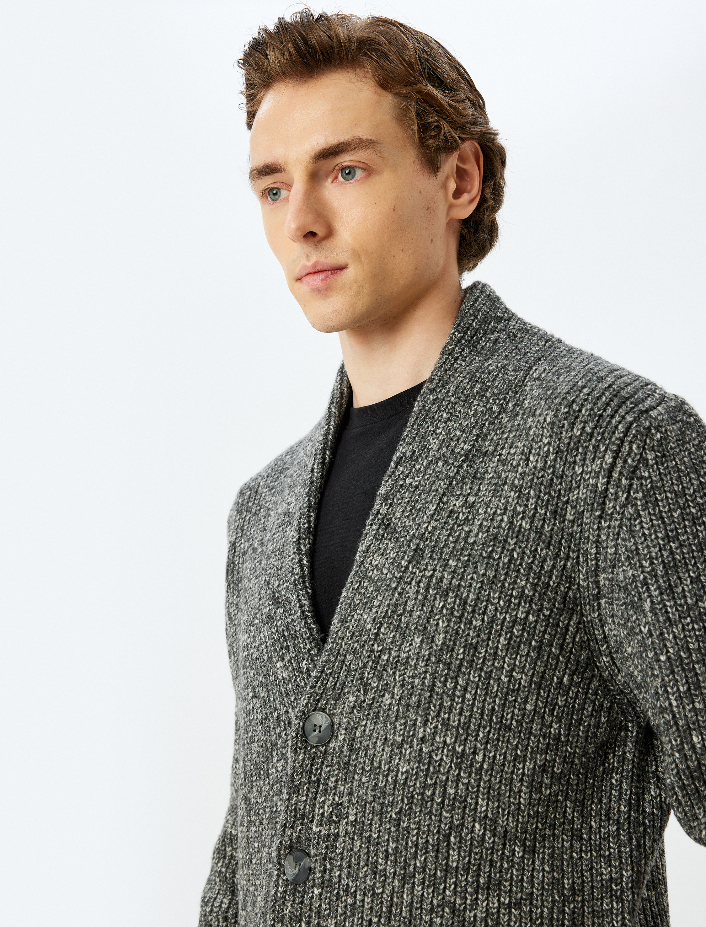 V Yaka Pamuk Karışımlı Düğmeli Triko Hırka