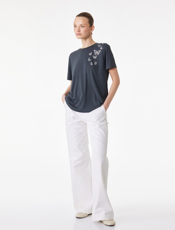 Kısa Kollu Yuvarlak Yaka Kelebek Baskılı Tişört Sepete Ekle