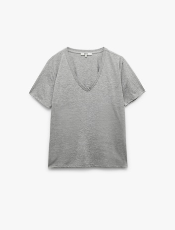Pamuklu Kısa Kollu Derin V Yaka Tişört