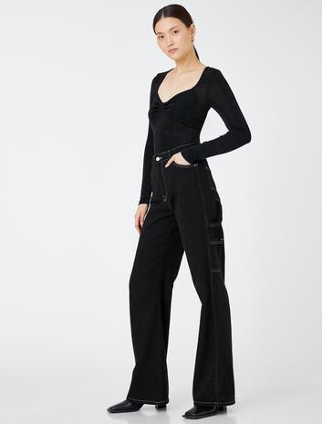 Büzgülü V Yaka Tişört
