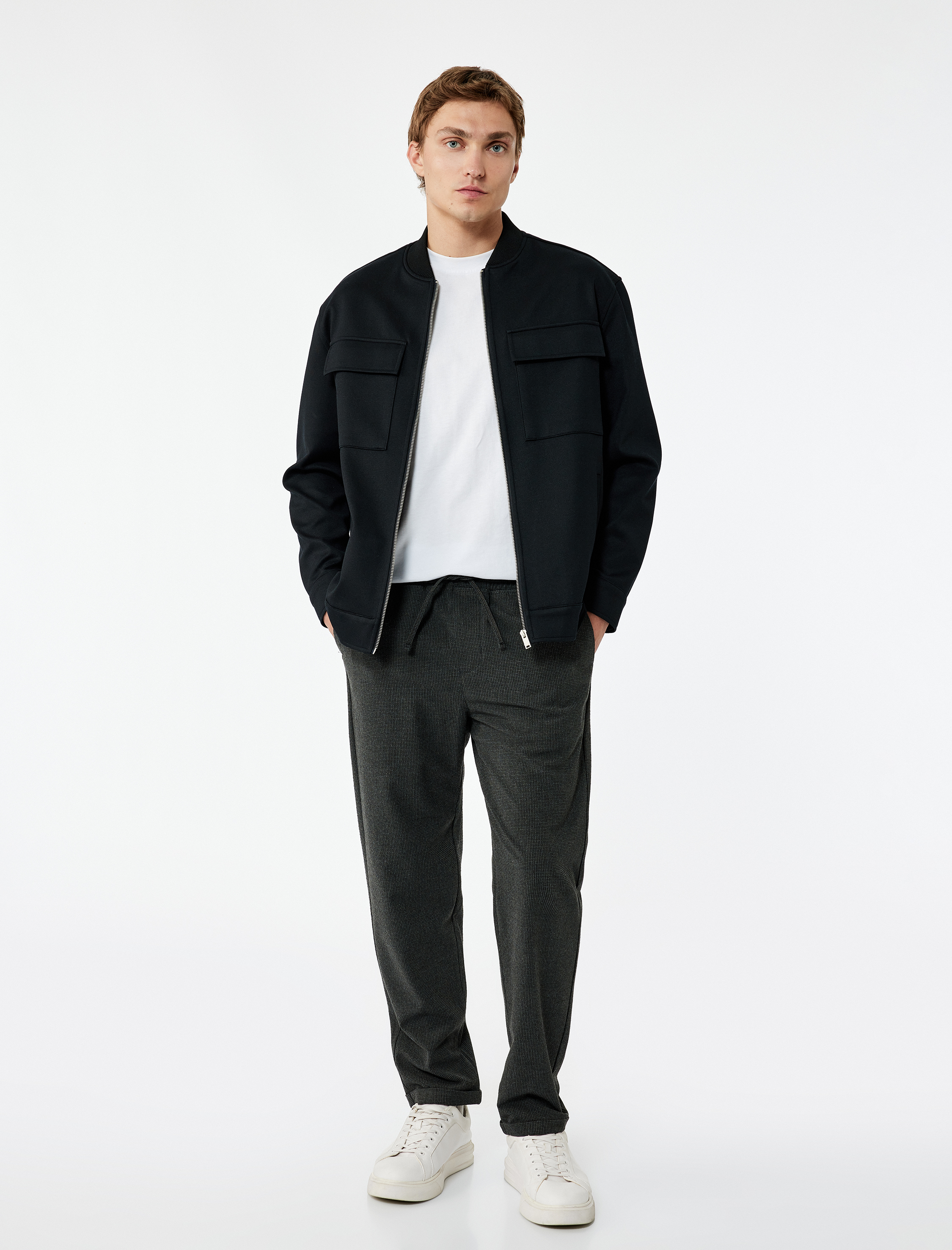 Viskon Karışımlı Cep Detaylı Dokulu Beli Bağcıklı Pantolon