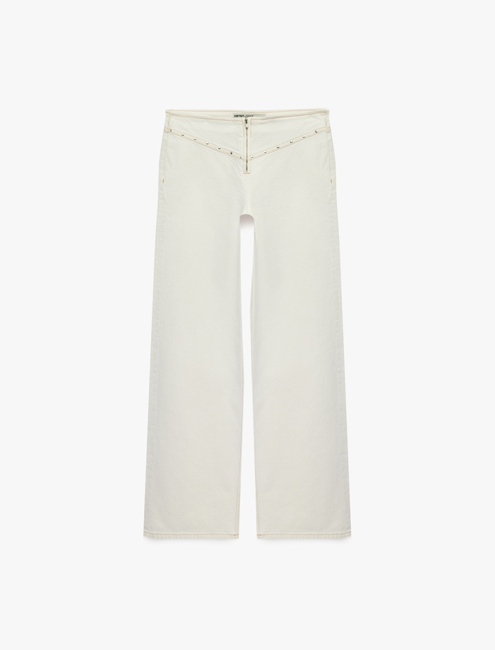 Düşük Bel Troklu Fermuarlı Cep Detaylı Geniş Paça Pantolon - Wide Leg Jeans
