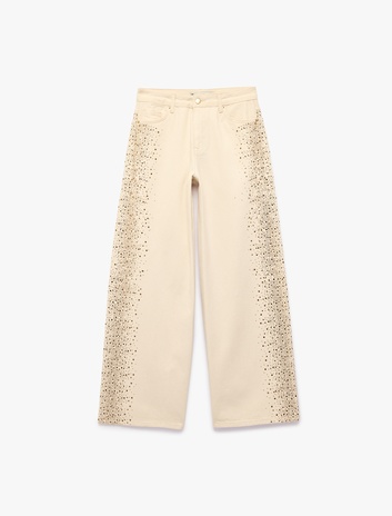 { "item_name": "Cepli Taş Detaylı Geniş Paça Denim Pantolon - Wide Leg Jeans", "item_id": "8684848776376", "price": 1699.99 , "item_brand": "Koton", "item_category":"KOTON JEANS", "item_category2":"OLE", "item_category3":"WOMEN", "item_category4":"WOVEN BOTTOMS", "item_category5":"TROUSERS", "item_season":"2026 SPRING/SUMMER", "item_variant": "EKRU|42", "item_list_name":"Wide Leg Jean", "item_list_id":"1191", "index": 26 , "quantity":1, "base_code": "6SAL40059MW" }