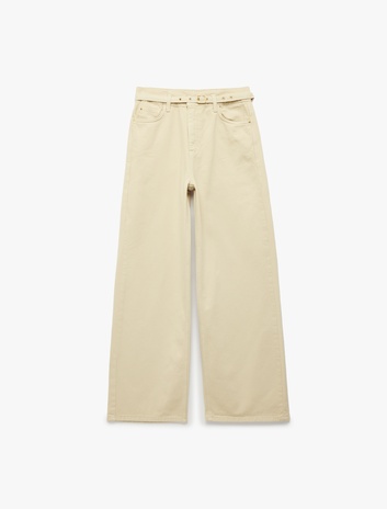 Pamuklu Yüksek Bel Kemerli Geniş Paça Pantolon - Wide Leg Jeans