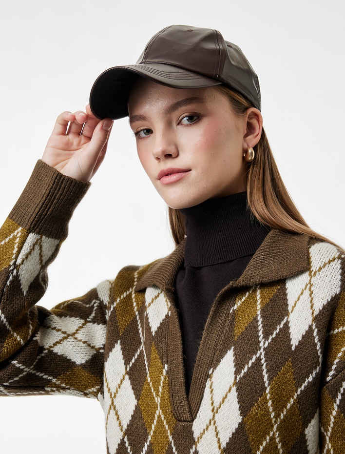 Polo Yaka Baklava Desenli Triko Kazak Sepete Ekle