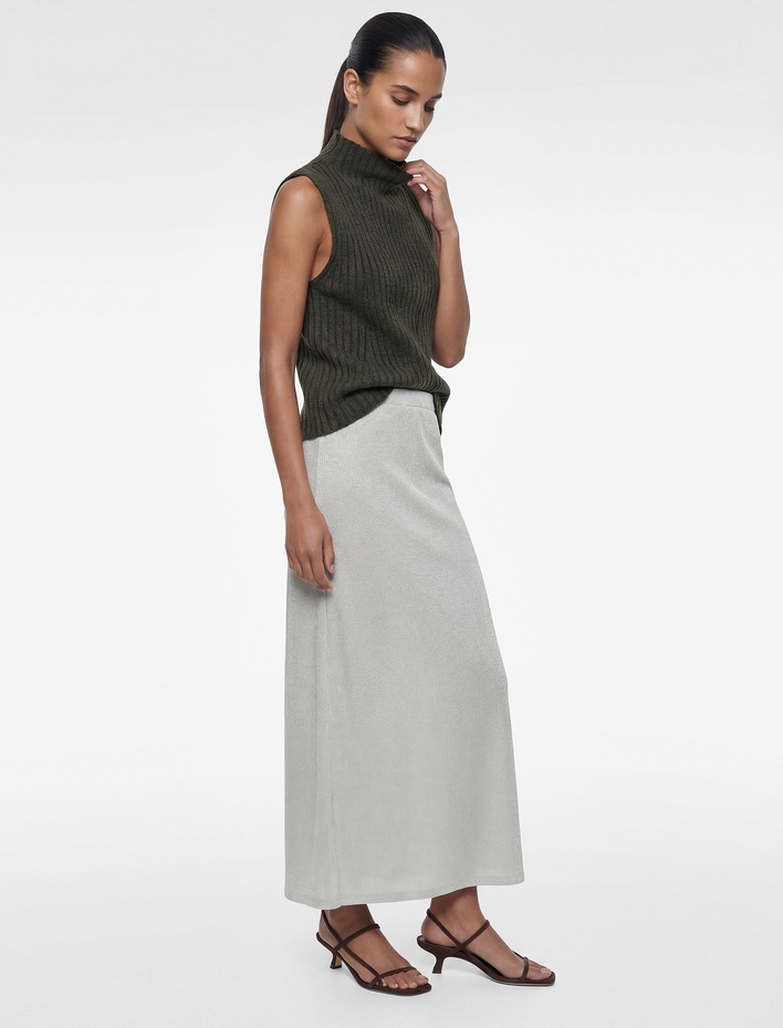 İnce Metalik İplik Detaylı Parıltılı Midi A Kesim Etek Sepete Ekle