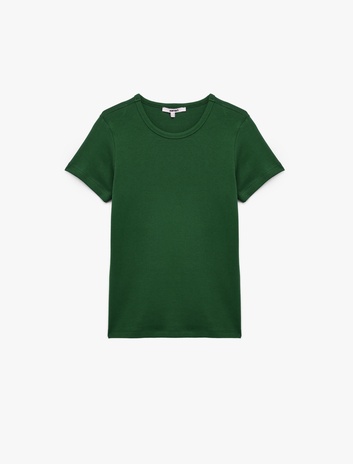 Pamuklu Kısa Kollu Bisiklet Yaka Basic Tişört
