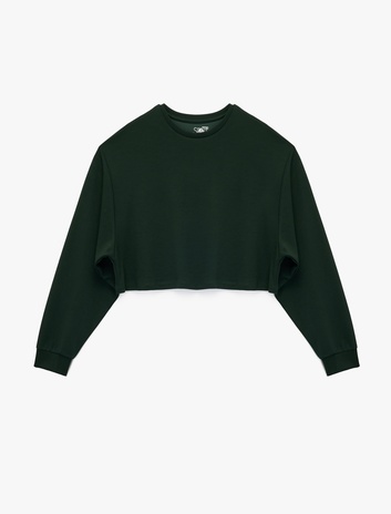 Viskon Oversize Uzun Kollu Bisiklet Yaka Crop Spor Sweatshirt Sepete Ekle