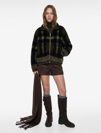 Dik Yaka Fermuarlı Ekoseli Hırka Sepete Ekle
