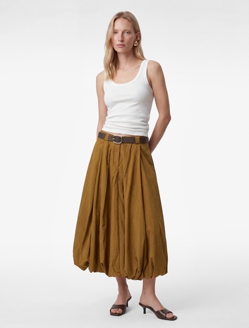 Yüksek Bel Kemer Detaylı Paraşüt Kumaş Midi Balon Etek Sepete Ekle