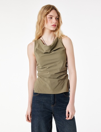 Paraşüt Kumaş Büzgülü Degaje Yaka Kolsuz Bluz