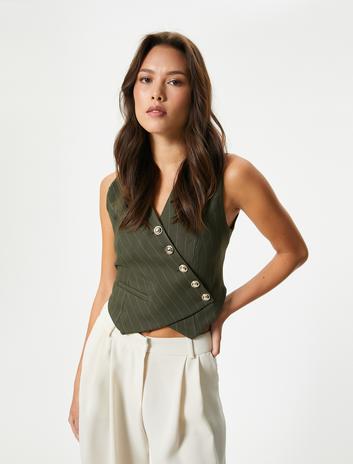 Yelek Asimetrik Kruvaze Kapama Düğmeli Cepli Sepete Ekle