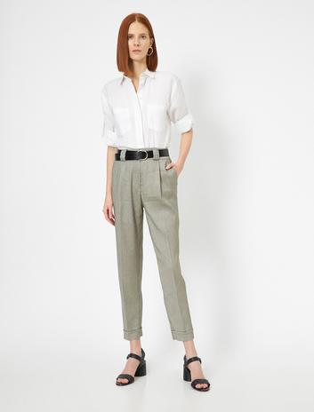 Kemerli Doğal Dokulu Pantolon Keten Karışımlı
