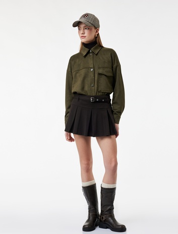 Cep Detaylı Düğmeli Uzun Kollu Klasik Yaka Süet Görünümlü Gömlek Sepete Ekle