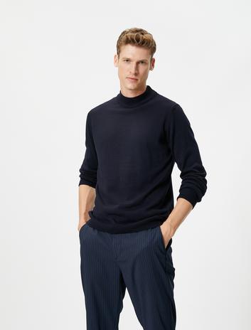 Triko Kazak Yarım Balıkçı Yaka Basic Dokulu Pamuk Karışımlı