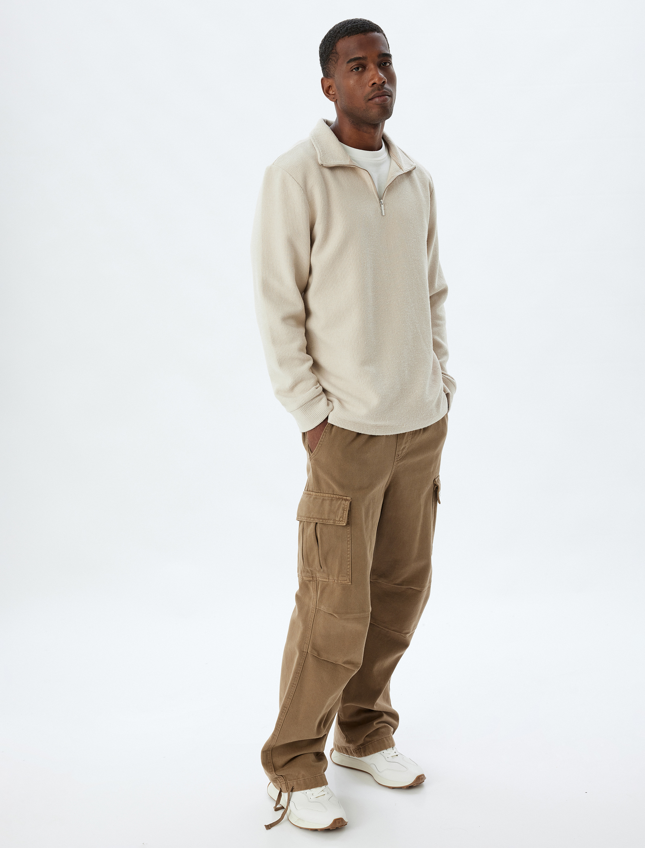 Yarım Fermuarlı Kazak Basic Pamuk Karışımlı Dokulu Uzun Kollu