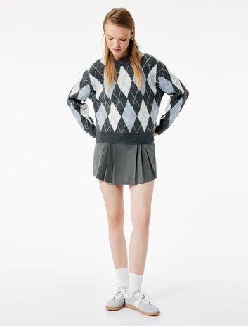Uzun Kollu Bisiklet Yaka Baklava Desenli Triko Kazak Sepete Ekle