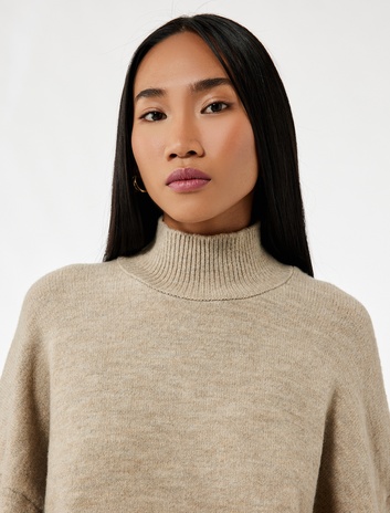 Oversize Uzun Kollu Dik Yaka Triko Kazak Sepete Ekle