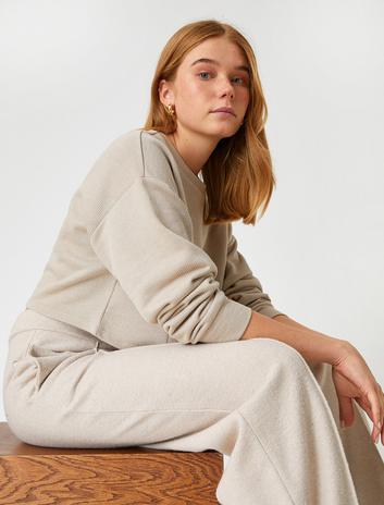 Bisiklet Yaka Sweatshirt Rahat Kesim Uzun Kollu Ribanalı Sepete Ekle