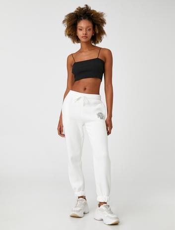 Şardonlu Jogger Eşofman Altı İşlemeli Cep Detaylı Paçası Beli Lastikli