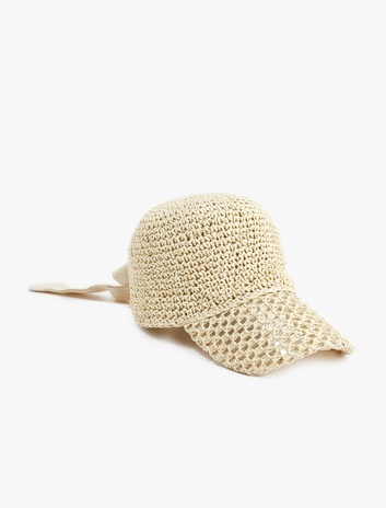 Kadın Arkası Bağlamalı Fiyonk Detaylı Kep Hasır Şapka