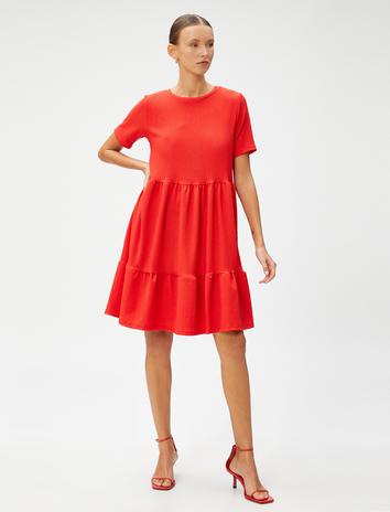 Kısa Elbise Katlı Kısa Kollu Bisiklet Yaka Sepete Ekle