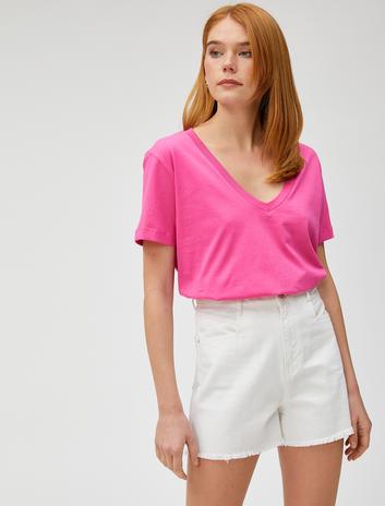 Basic Tişört V Yaka Kısa Kollu