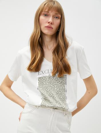 Yazı Baskılı Tişört V Yaka
