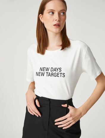 Kısa Kollu Tişört Parlak Yazı Baskılı Pamuklu