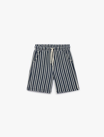 Beli Bağcıklı Pamuklu Dokulu Çizgili  Şort Sepete Ekle