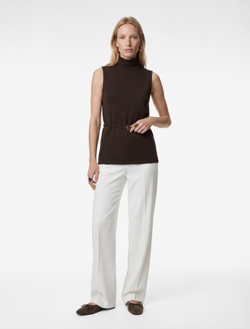 Viskon Karışımlı Kemerli Dik Yaka Kolsuz Bluz Sepete Ekle
