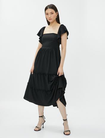 Midi Boy Elbise Gipeli Kare Yaka Fırfırlı Sepete Ekle