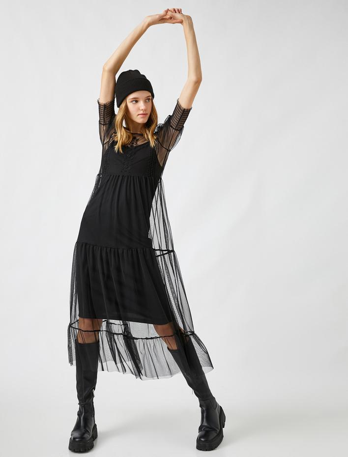 Tül Detaylı Fırfırlı Elbise Sepete Ekle