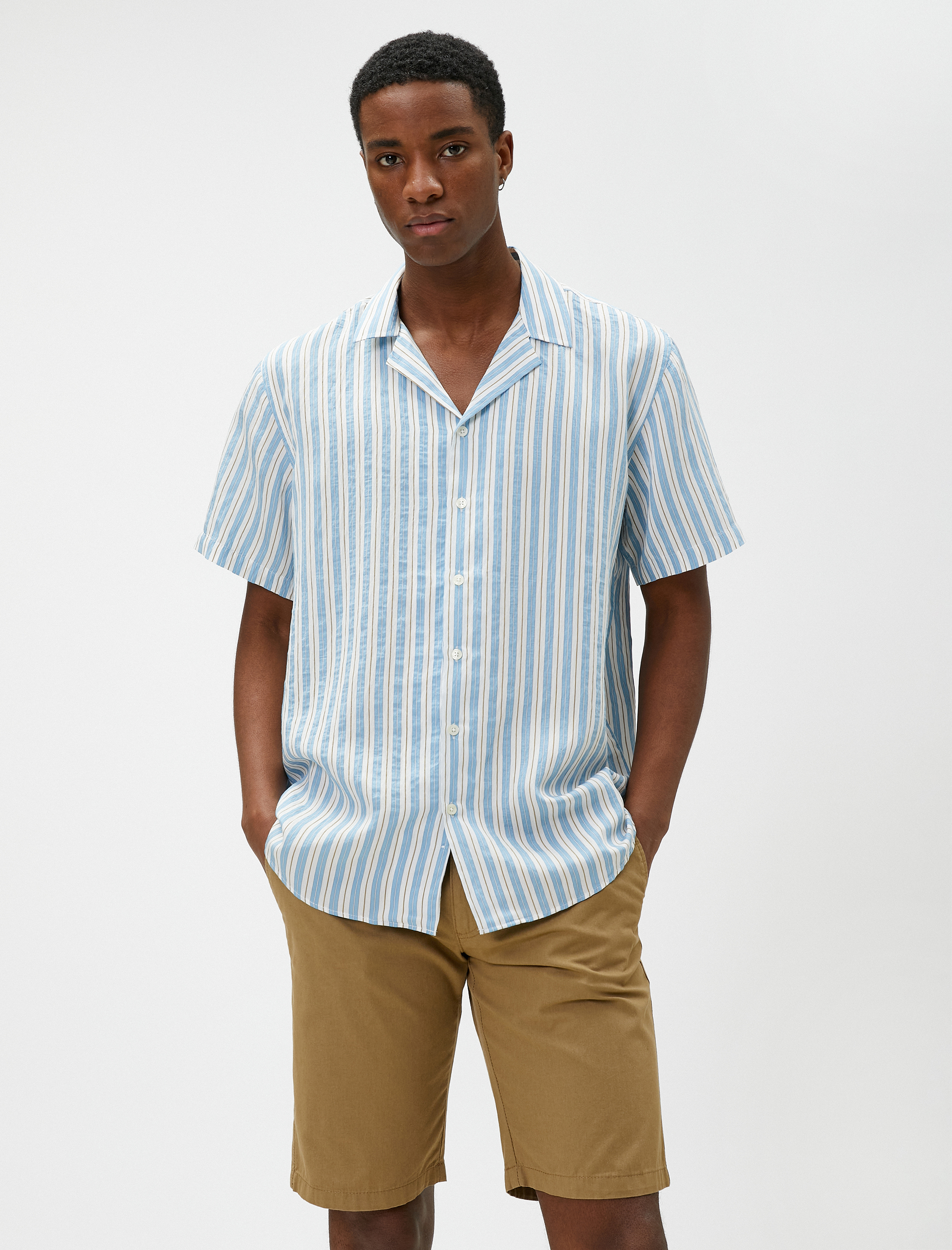 Yazlık Gömlek Devrik Yaka Düğmeli Kısa Kollu