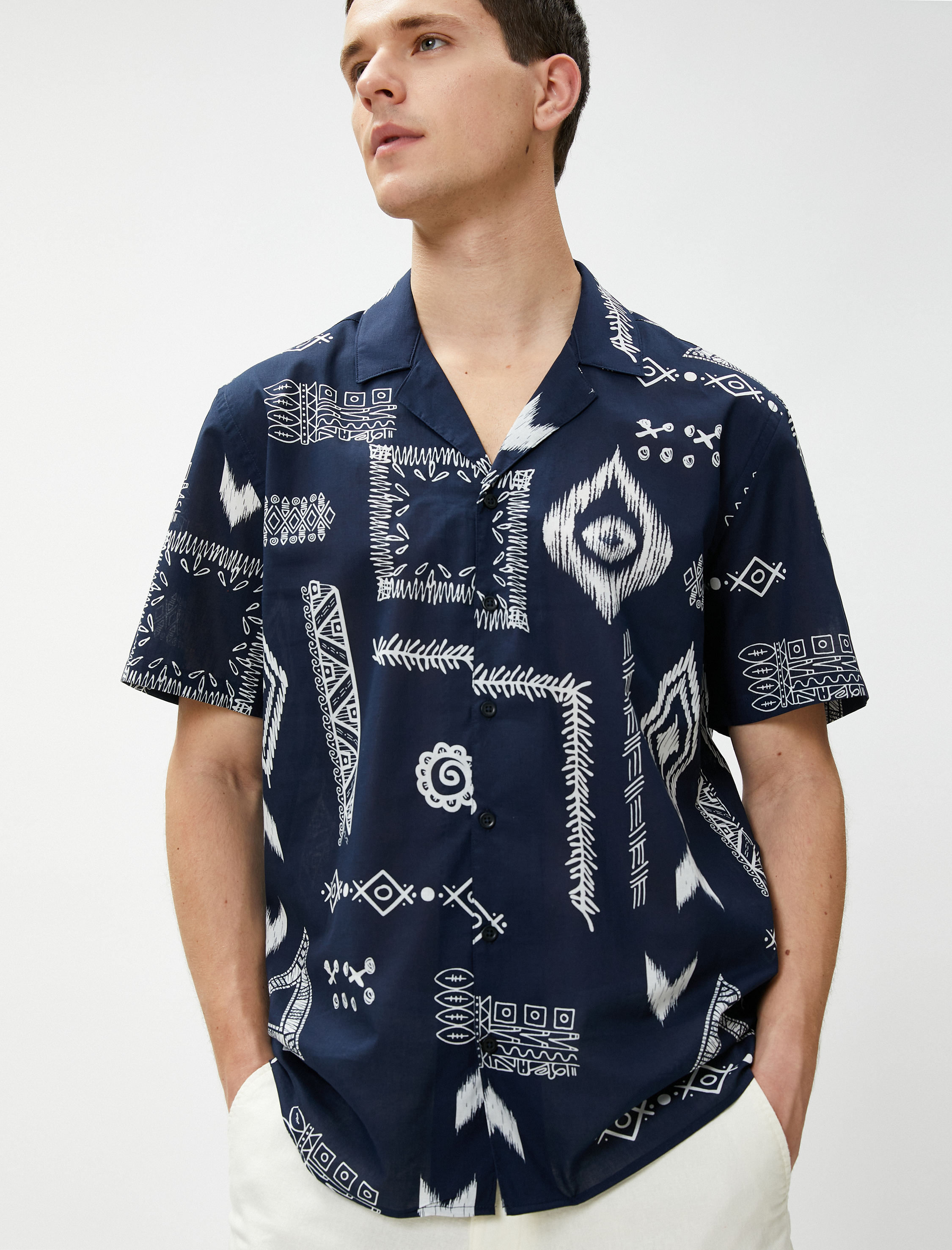 Yazlık Gömlek Kısa Kollu Etnik Baskılı Devrik Yaka Düğmeli