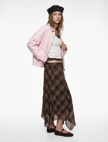 Rahat Kalıp Normal Bel Asimetrik Kesim Viskon Karışımlı Midi Ekoseli Etek Sepete Ekle