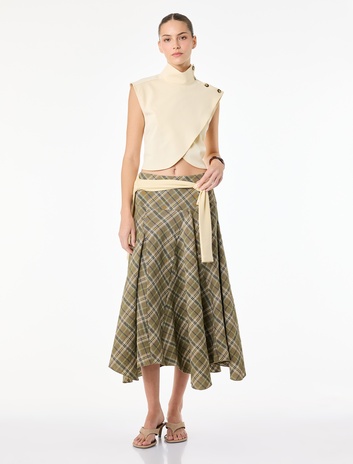 Viskon Karışımlı Asimetrik Kesim Midi Ekose Etek Sepete Ekle