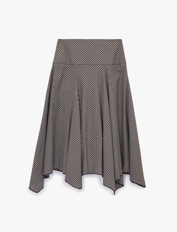 Pamuklu Asimetrik Kesim Kareli Midi Kloş Etek Sepete Ekle