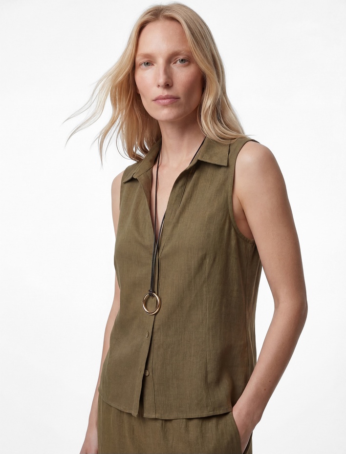 Keten Görünümlü Düğmeli Kolsuz Gömlek Sepete Ekle