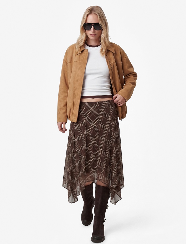 Uzun Kollu Cepli Fermuarlı Suni Süet Ceket Sepete Ekle