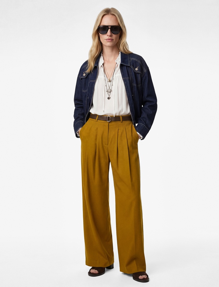 Kemer Detaylı Pileli Geniş Paça Palazzo Pantolon Sepete Ekle