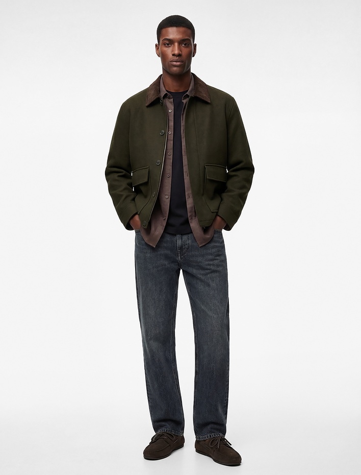 Regular Fit Uzun Kollu Cepli Gömlek Yaka Fermuarlı Fitilli Bomber Ceket Sepete Ekle