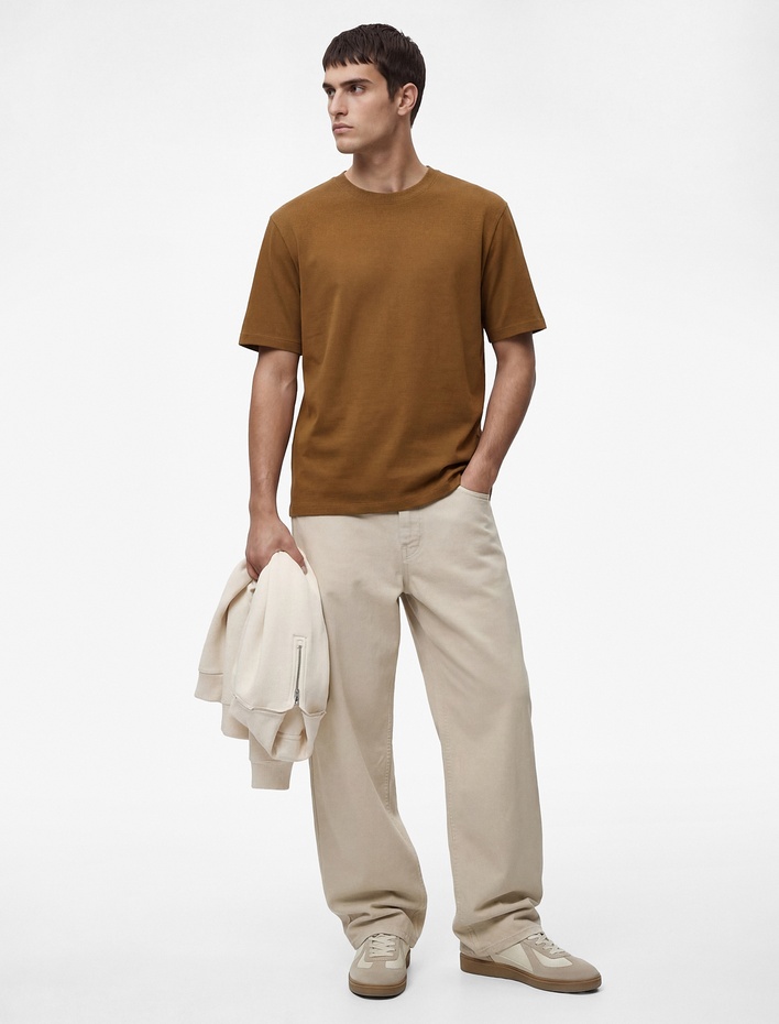 Regular Fit Kısa Kollu Dokulu Bisiklet Yaka Tişört Sepete Ekle