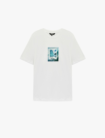 Regular Fit Kısa Kollu Bisiklet Yaka Pamuklu Baskılı Tişört Sepete Ekle