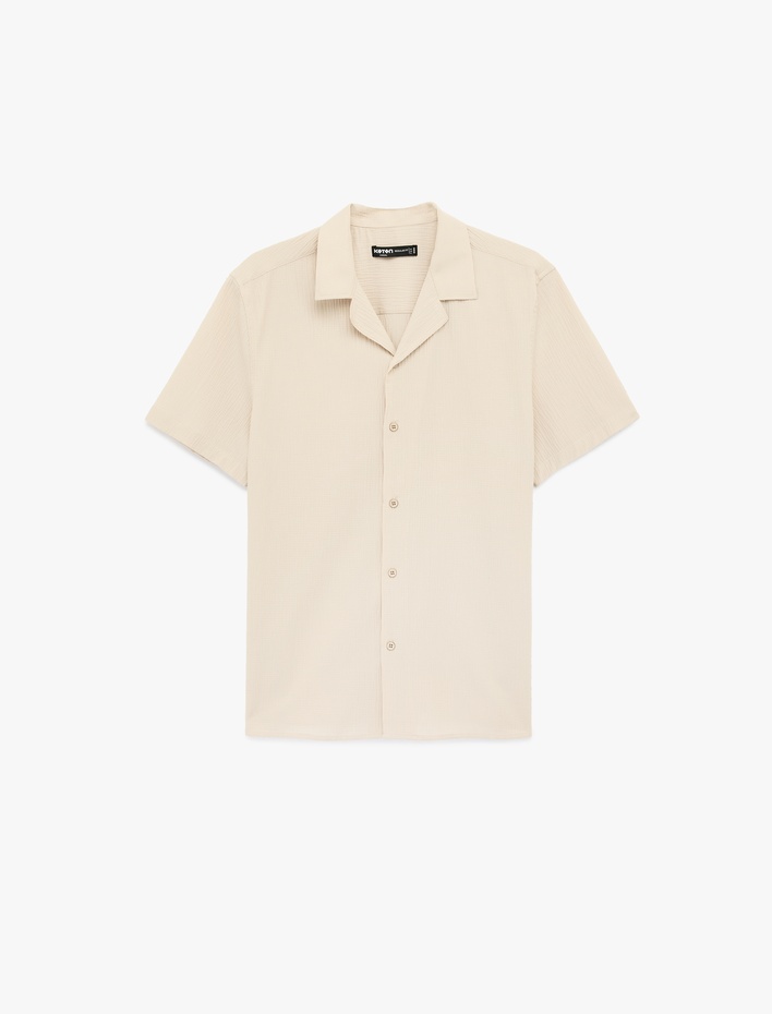 Regular Fit Pamuklu Dokulu Kısa Kollu Apaş Yaka Gömlek Sepete Ekle